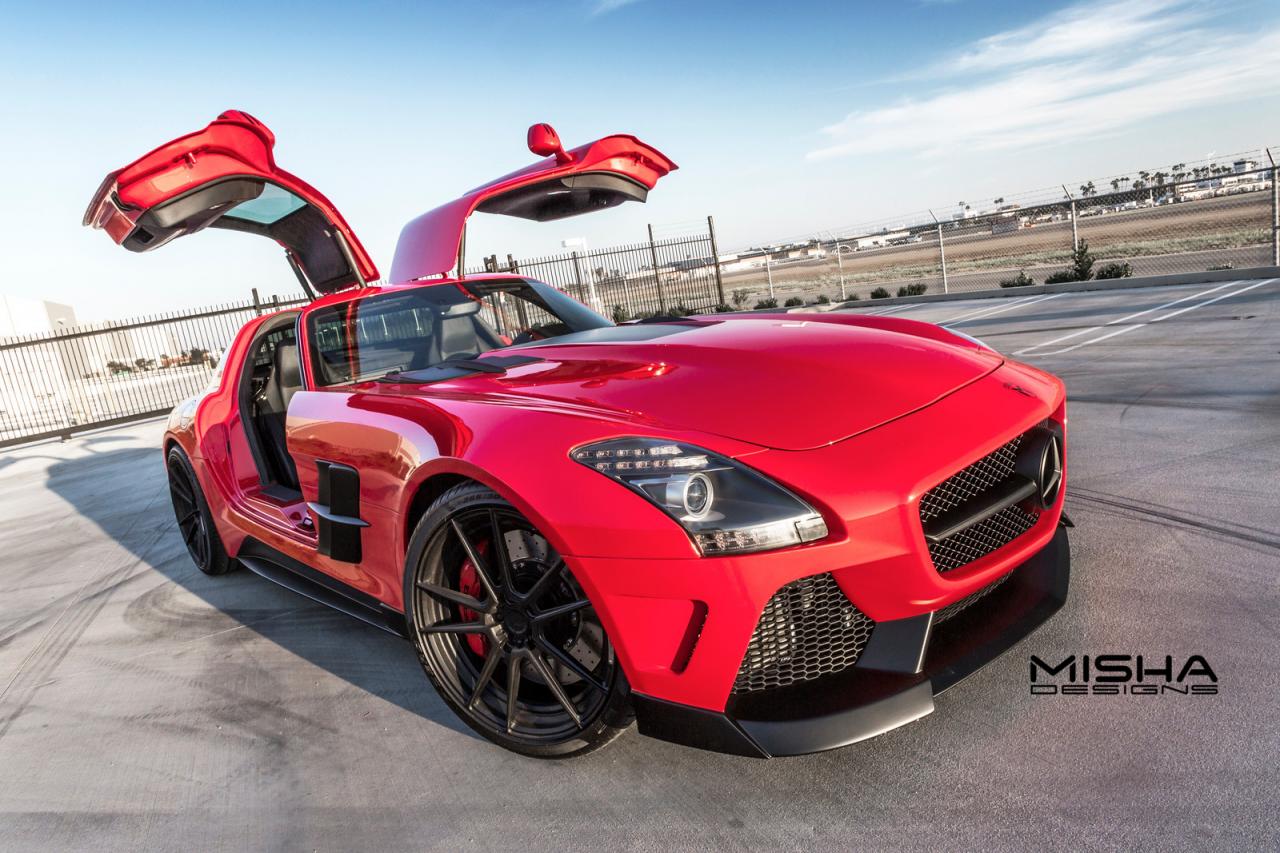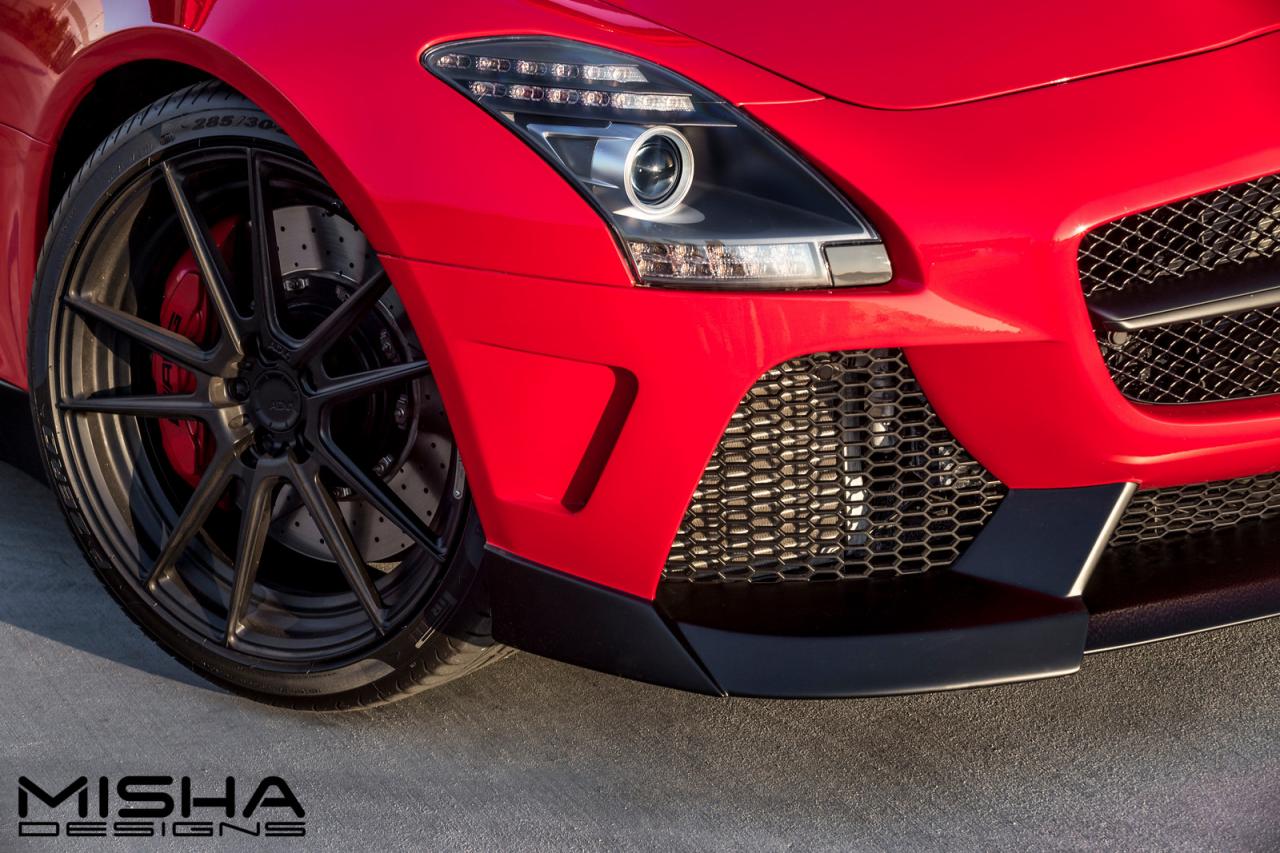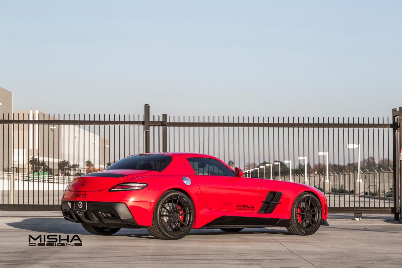 Misha Designs released details and photos on their styling kit for the Mercedes SLS AMG. The American company opted for a red exterior finish with a tweaked front bumpers new hood, side skirts and a revised rear diffuser.