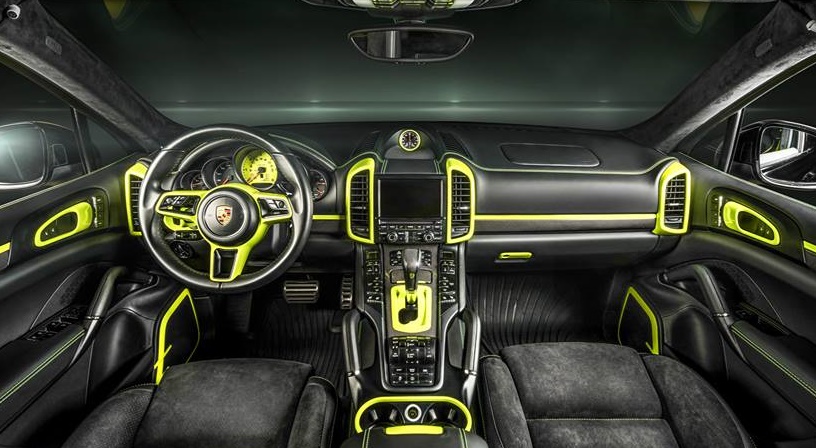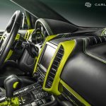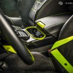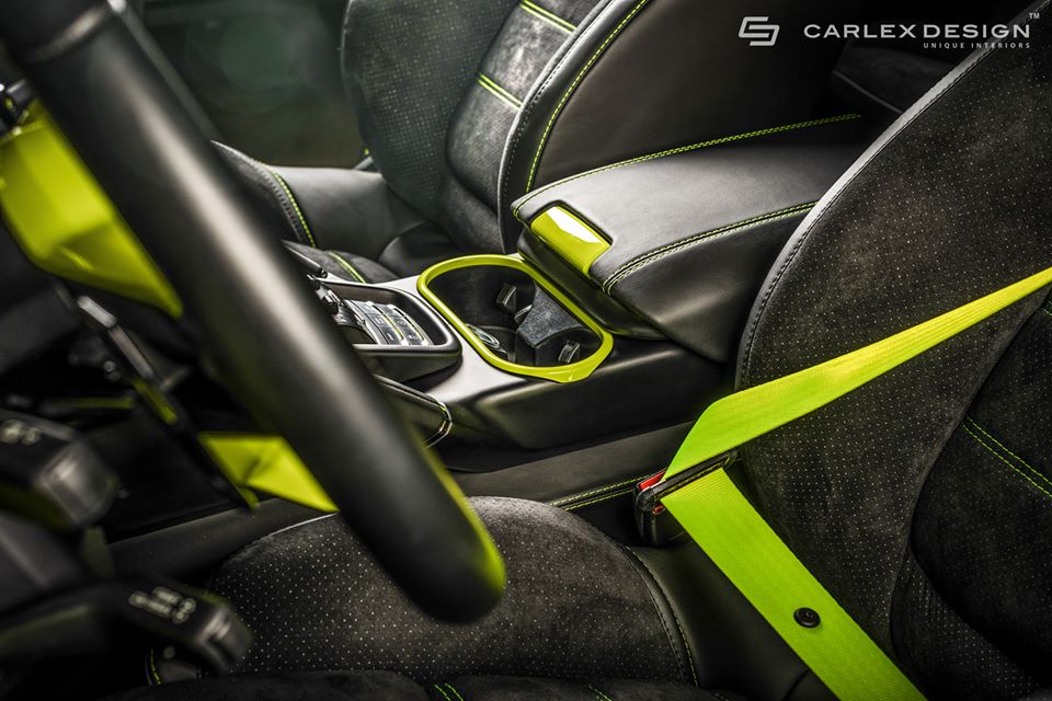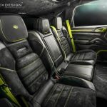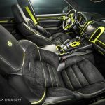Besides the high-quality material, the aftermarket specialists have also added black leather and Alcantara on the seats, door cards, dash, headliner and sun visors, all complemented with the green stitching and trim levels, such as the air vent bezels, door trims, cup holders, speaker grilles, steering wheel arms and gear shift gate. The green trim is also looking smashing on the stitching accents on the seats and logo embroideries.