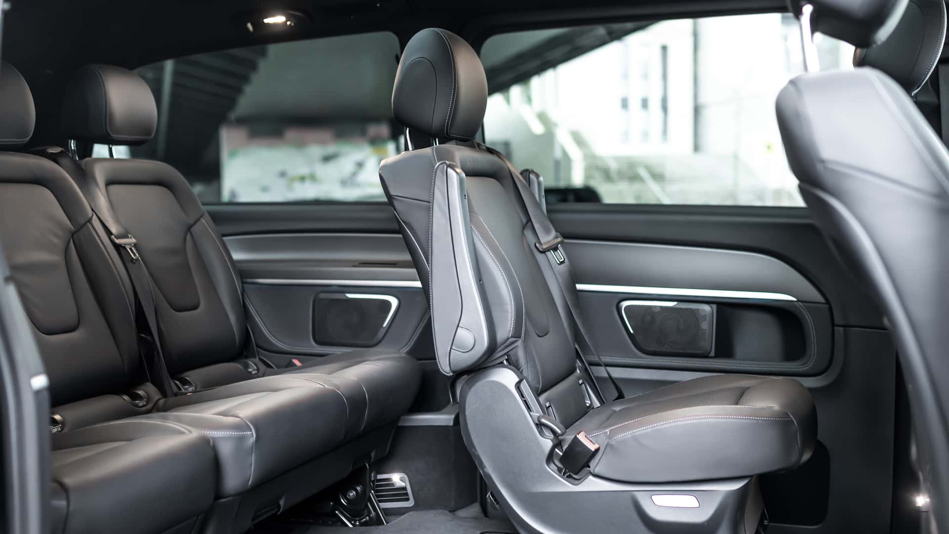 When it comes to the suspension and wheels, the V 350 strikes the balance. The suspension has been lowered by 0.98 inches using H&R Springs, giving it a sleeker profile without sacrificing on-road comfort. The minivan rides on 20-inch spoke wheels with a glossy black finish enhancing both its visual appeal and handling dynamics.