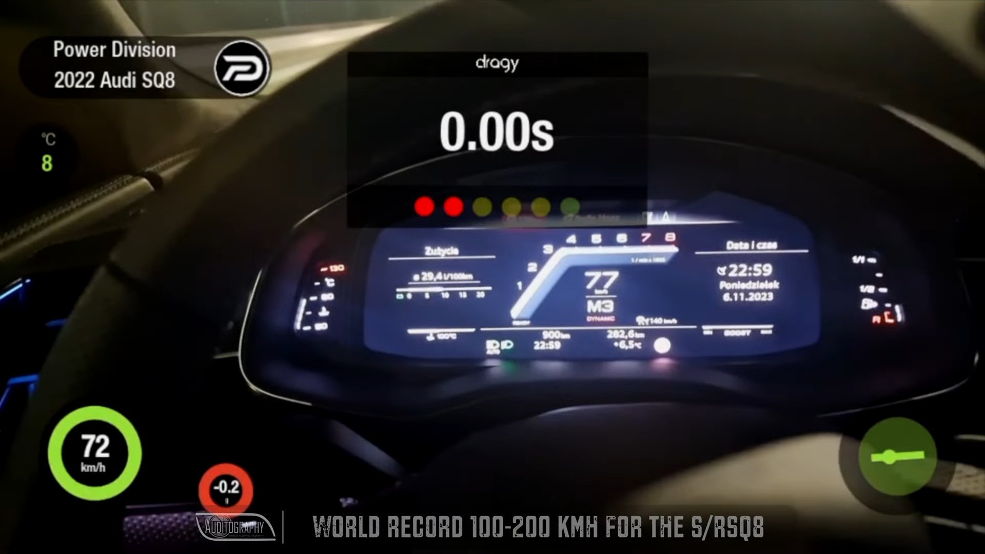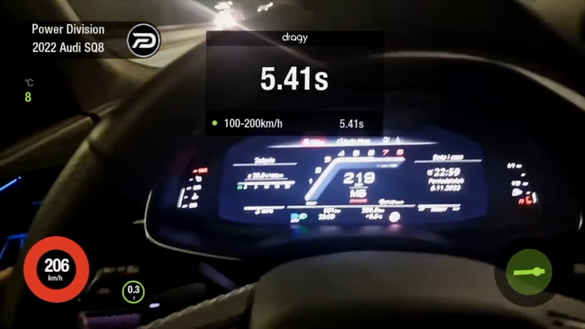 Thanks to the expertise of Power Division, the 2022 Audi SQ8 has achieved a feat in its sprint from 100 to 200 kph (62 124 mph), clocking in at 5.41 seconds. This accomplishment truly showcases their pursuit of speed and commitment to engineering excellence. Equally noteworthy is its acceleration time from 0 to 100 kph (62 mph) which stands at 2.81 seconds – quite an amazing achievement for a luxurious hatchback weighing over two tons.