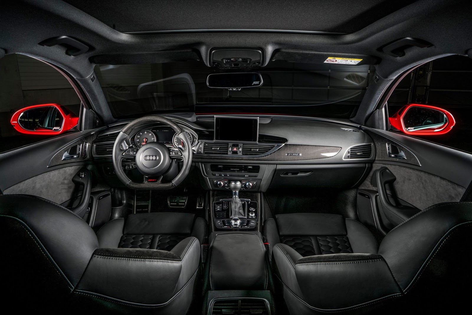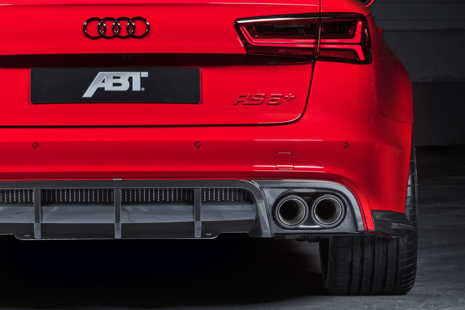Speaking of visuals, the tuner`s Audi RS+ boasts with carbon fiber parts around the body. We are dealing here with carbon fiber skirts, front lip, mirror casings, rear diffuser and wheel arch vents, adding as well carbon fiber tailpipe trim.