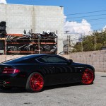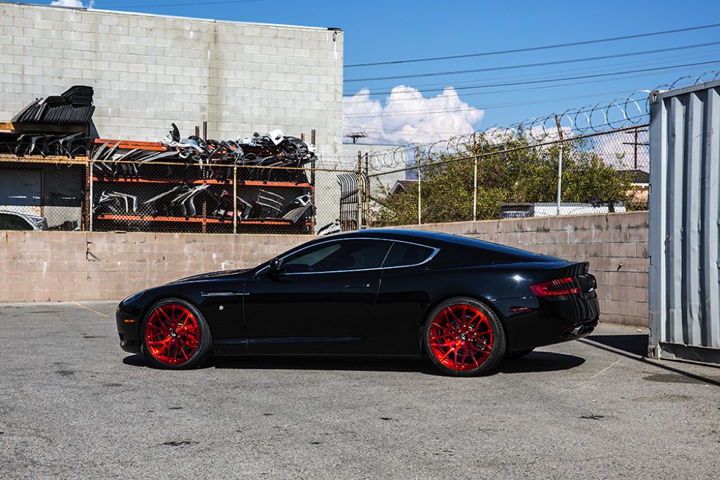 Lately, the tuner has fitted this black Aston Martin DB9 with their newest set of wheels. We are talking here about the 20-inch monoblock Maglia wheels, all finished in candy red and which provide the model a more stand-out feel and look.