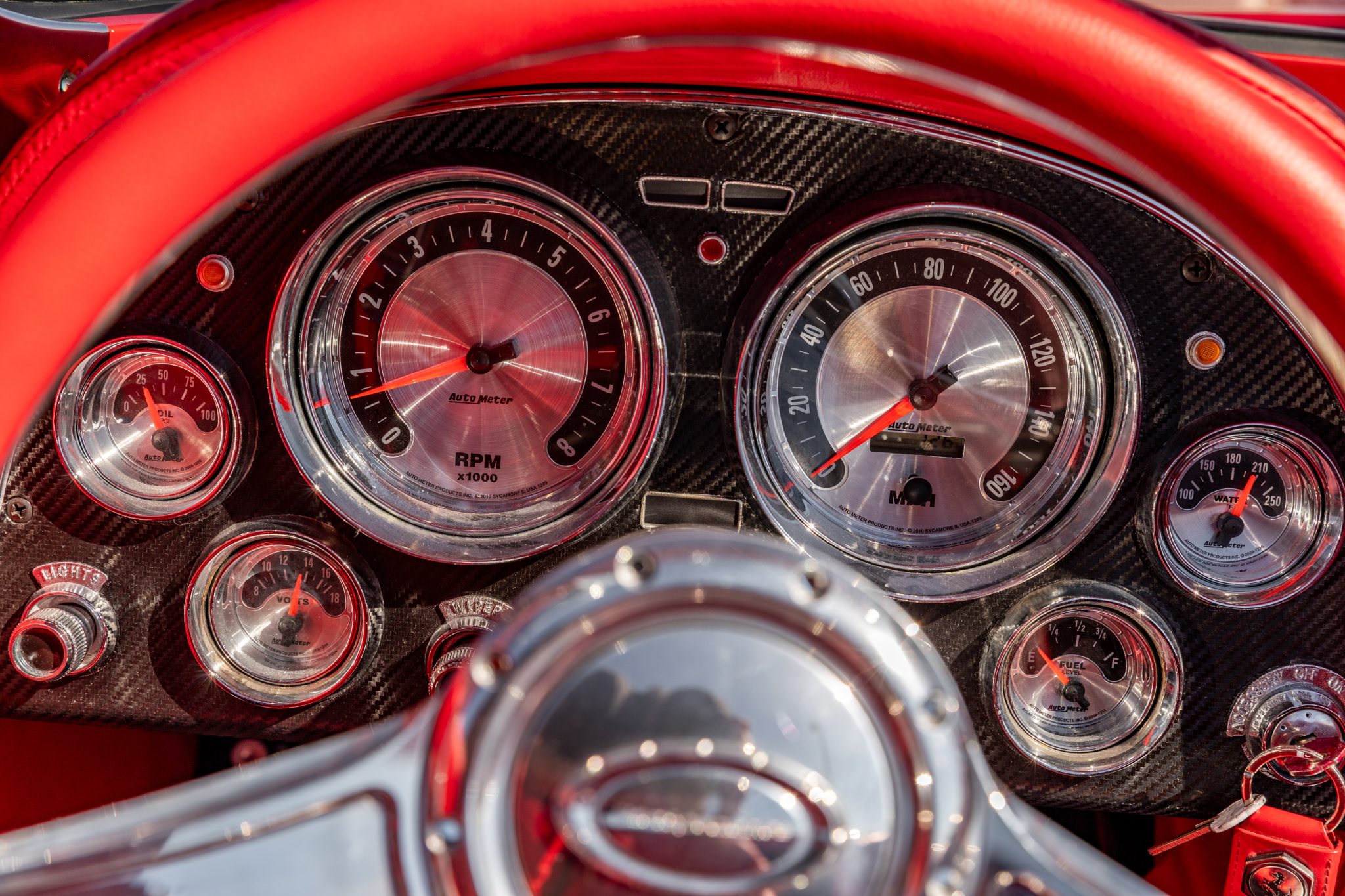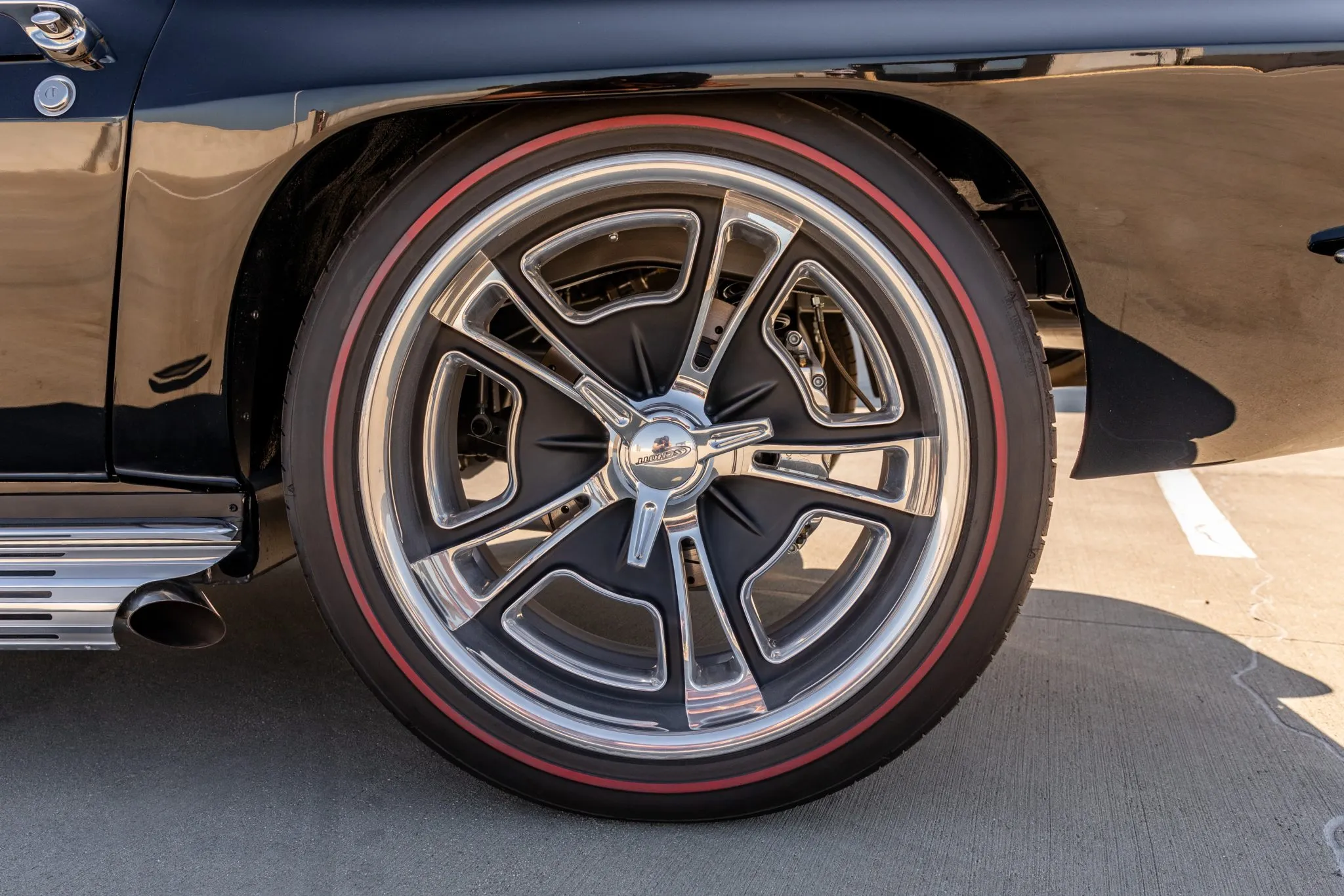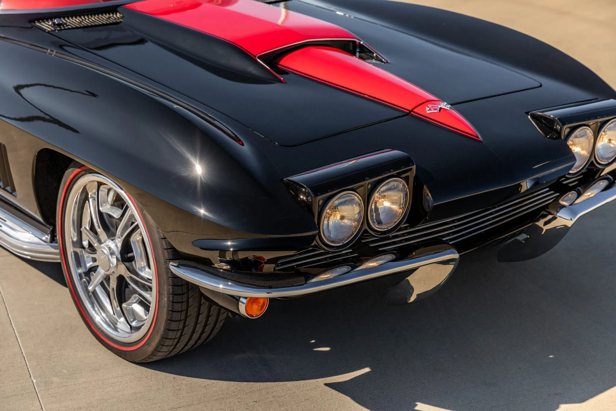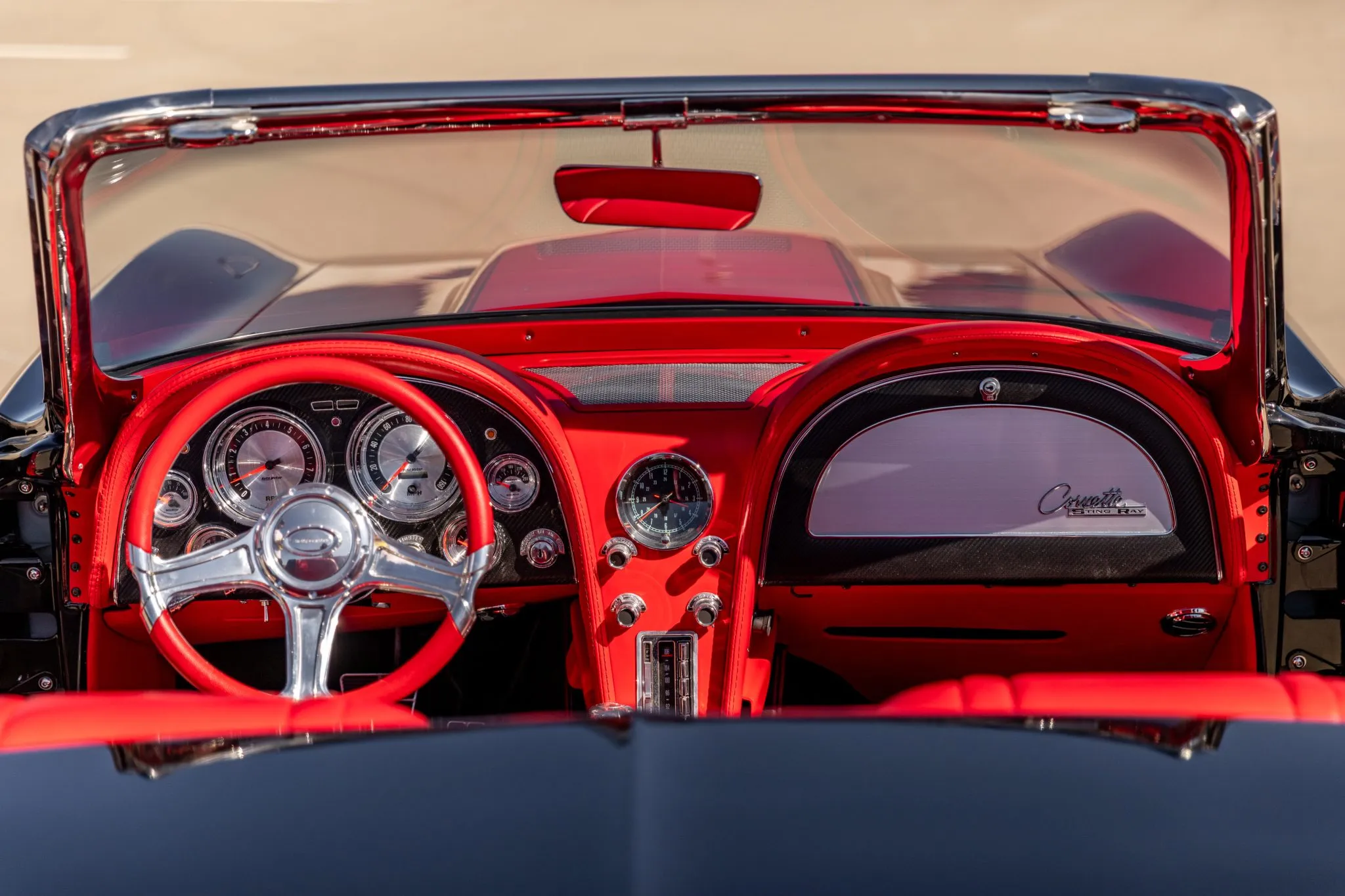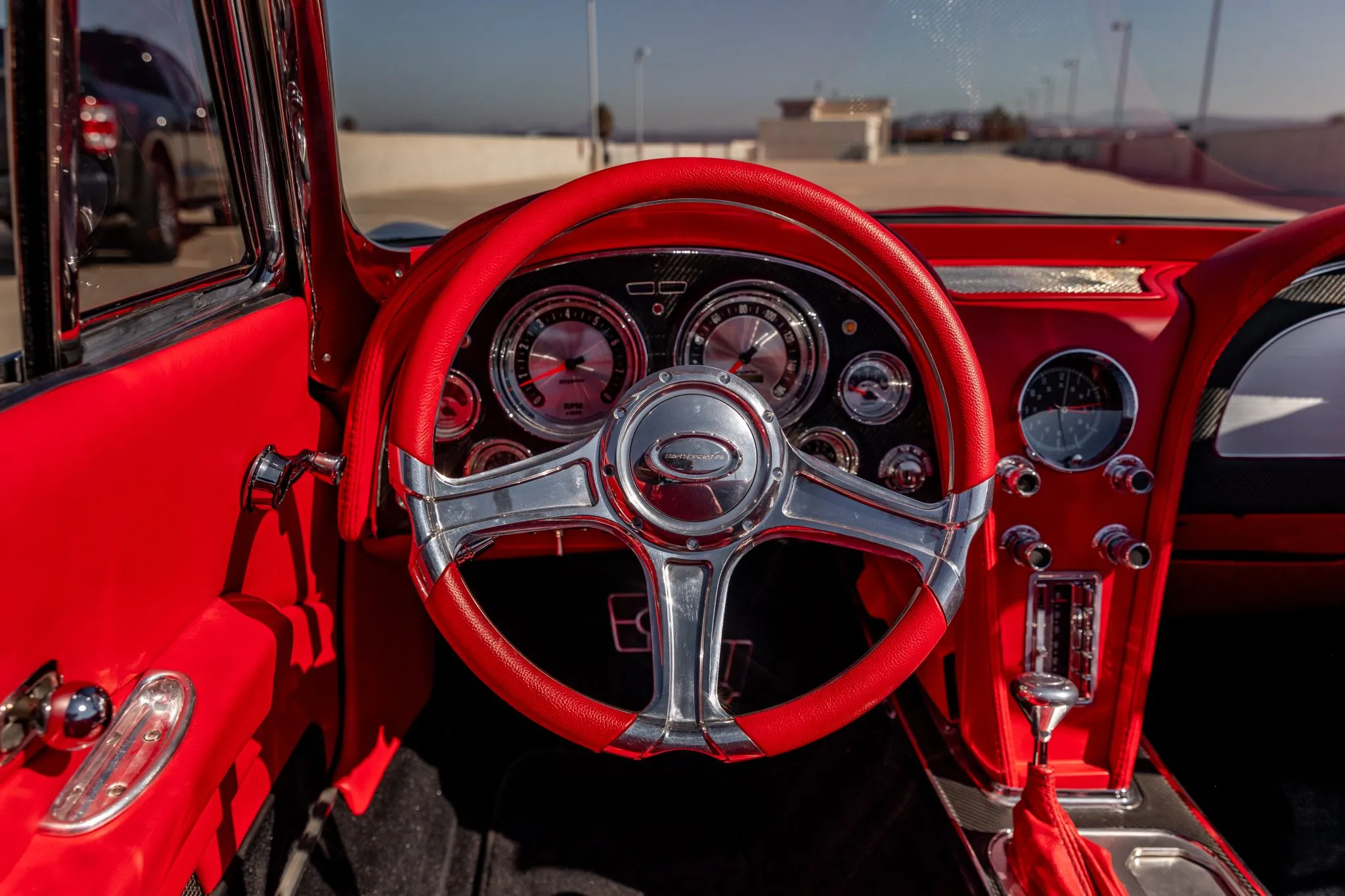This C2 build doesn’t just stop at aesthetics and power—it’s equipped for an exhilarating driving experience. Strange Engineering coilovers and QA1 springs join forces with front and rear sway bars, ensuring impeccable handling. The power-assisted rack-and-pinion steering ensures precision, while the polished six-piston Wilwood brakes at the front and four-piston rear callipers deliver commanding stopping power over drilled and slotted rotors.