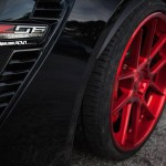The wheels are sized 20×10.5 and 21×12.5 front and rear, and the red finish they come with, perfectly complement the exterior`s pure black paint. Apart that, the model looks now cooler, thanks to the aluminum space frame, carbon fiber hood or the removable carbon fiber roof panel.