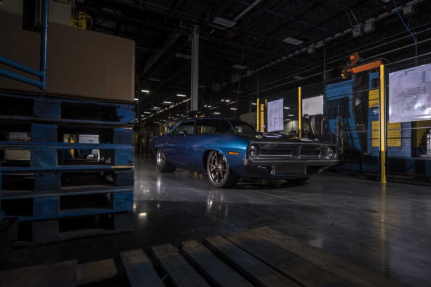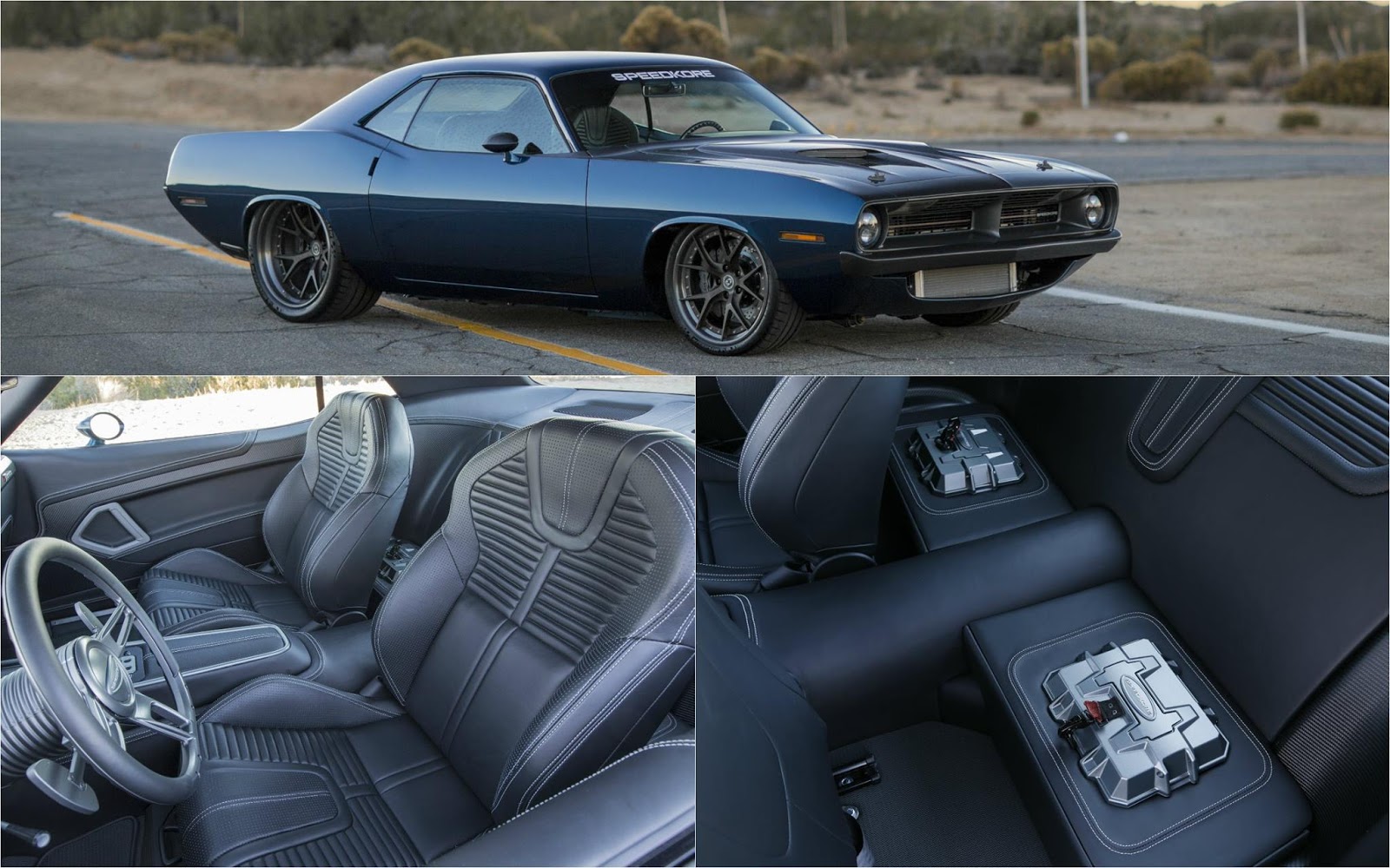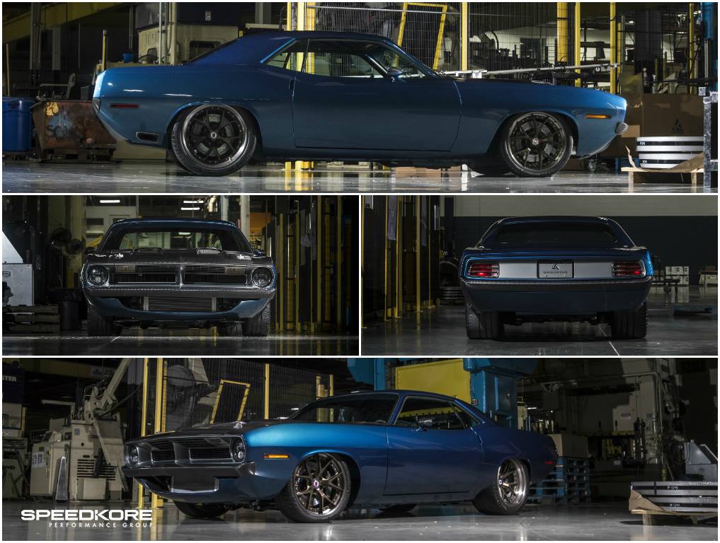 At the exterior, the 1970 Plymouth Barracuda by SpeedKore comes with carbon fiber A-pillar, custom-built hood and bulging scoops, adding as well the new HRE S101 wheels with Michelin Pilot Sport Cup 2, which perfectly match the car`s Lakeshore Blue exterior.