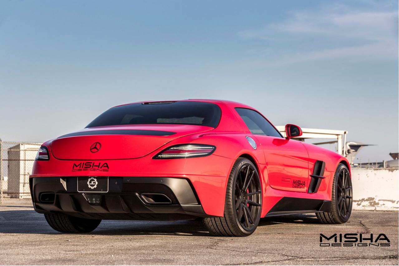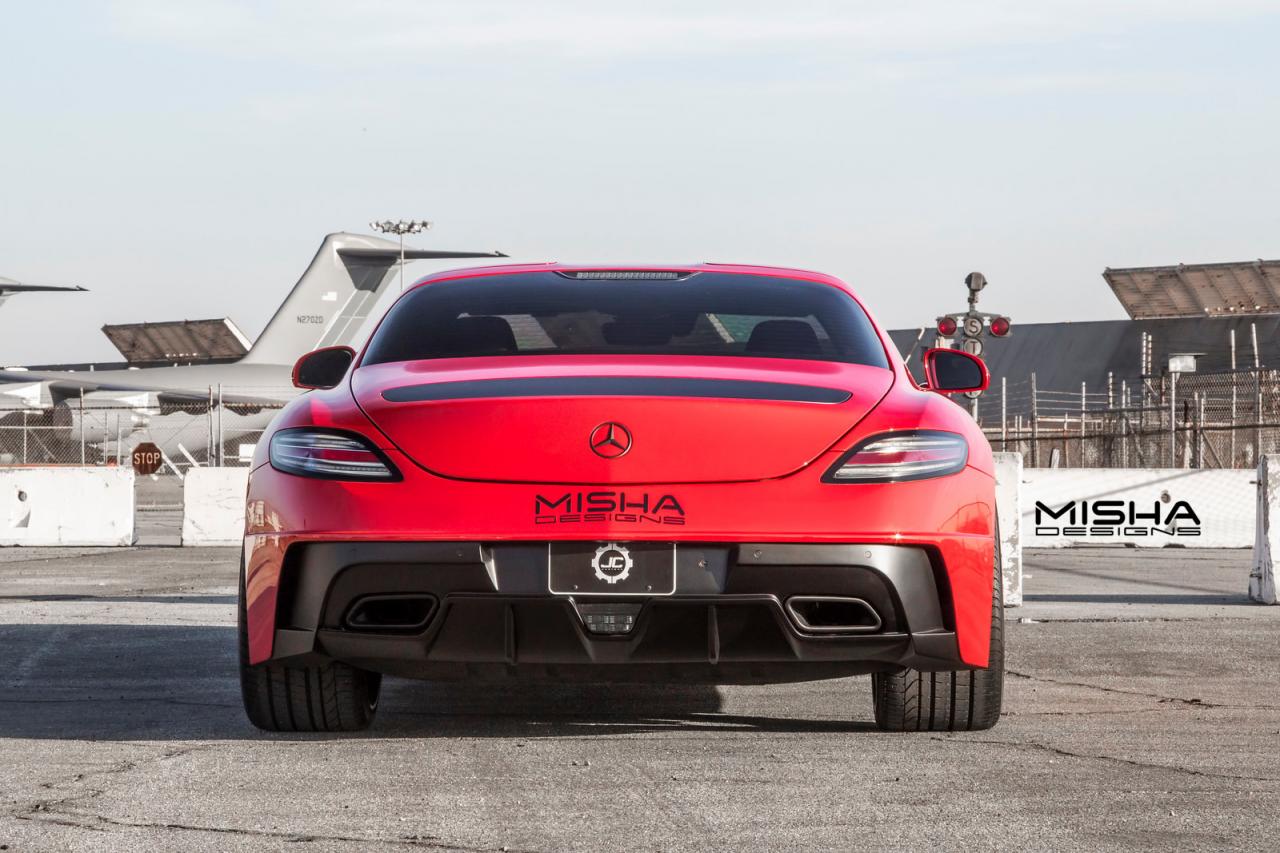 Misha Designs released details and photos on their styling kit for the Mercedes SLS AMG. The American company opted for a red exterior finish with a tweaked front bumpers new hood, side skirts and a revised rear diffuser.