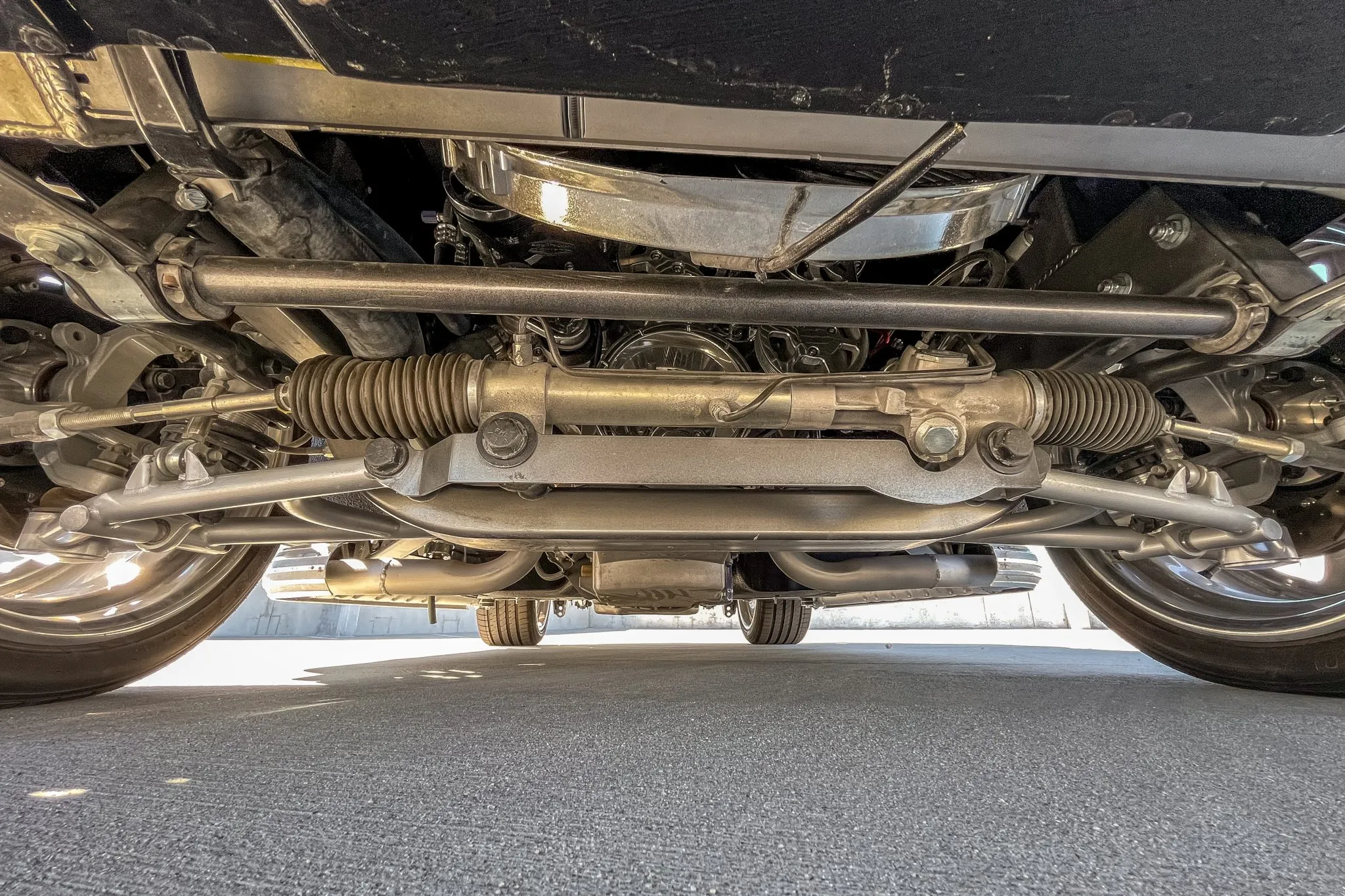 Underneath the hood resides a powerhouse—a 6.2-litre LS3 V8 intricately linked to a 4L70E four-speed automatic transmission. This V8, a modern twist on a classic, is not just about raw power but refined performance. Enhanced with a Top Street Performance Velocity aluminium intake manifold and fuel rails, the engine pushes beyond expectations. Although exact horsepower figures aren’t disclosed, with the LS3’s stock capabilities, we anticipate over 430 horsepower and 425 lb-ft of torque, all channelled to the rear wheels through a robust 9-inch rear axle.